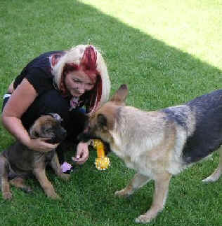 Welpen geworfen. Drei Rüden und sechs Hündinnen.
